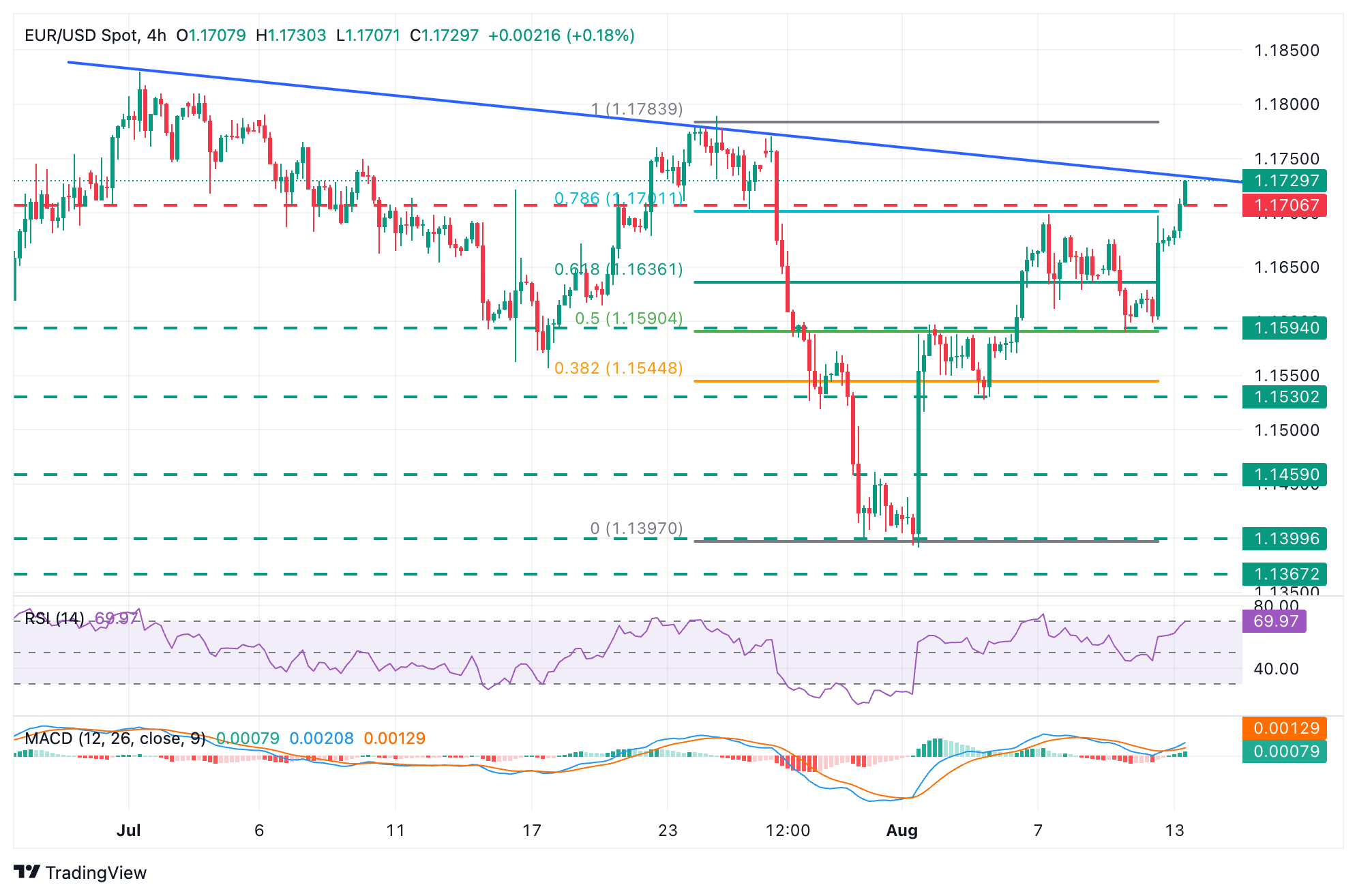 欧元/美元延续上涨,触及新的两周高点,周三在欧洲早盘交易中接近1.1730,从前一天的1.1600大幅上涨。周二发布的温和的美国消费者价格指数(CPI)数据巩固了对联邦储备系统(Fed)在九月降息的希望,导致美国收益率和美元下跌,为欧元提供了额外的支持。根据周二发布的CPI报告,七月消费者通胀保持稳定,显示不出特朗普关税的影响。在劳动力市场疲软的背景下,这为美联储下个月放松货币政策提供了重要支持。