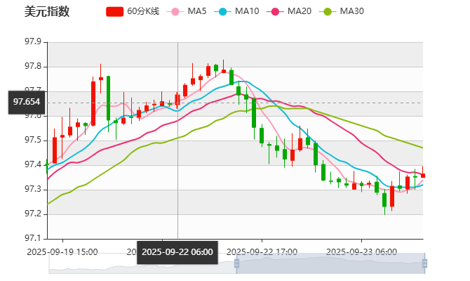周二(9月23日)亚盘早盘,美元指数最新价报97.32,涨幅0.01%,开盘价为97.31。美联储当前的政策基调——审慎而非转向鸽派——有效遏制了市场对短期内激进宽松的过度期待。