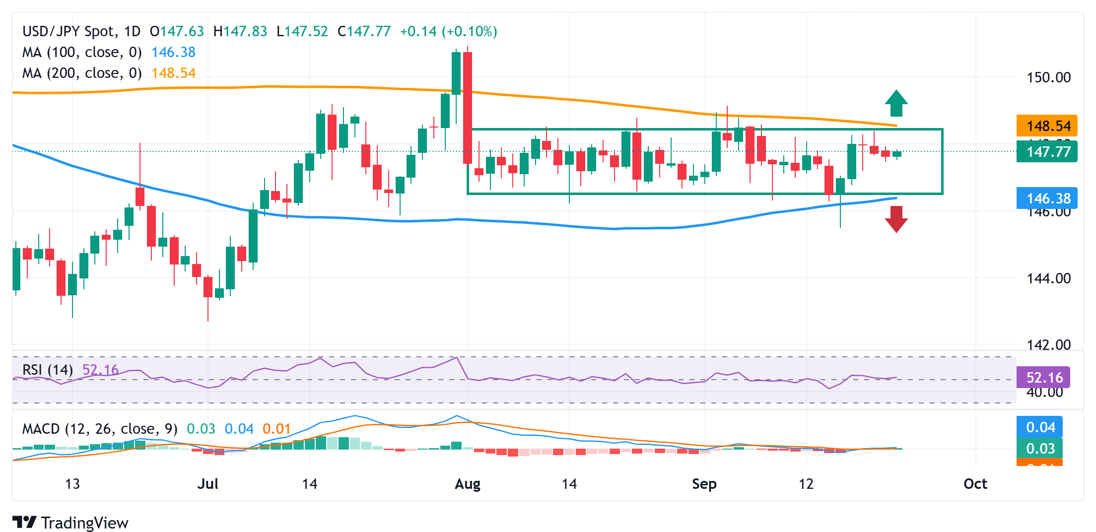 美元/日元这对货币自八月初以来,除了在两者方向上的少数反射性动作外,一直在一个熟悉的范围内交易。这构成了一个矩形形态,表明处于整理阶段。此外,日线图上的大多数中性指标在 positioning 一个明确的短期方向之前需要谨慎。同时,现货价格仍然低于200天简单移动平均线(SMA),148.00标记以上的有意义的买盘表明这对货币的最有可能的路径是向下的。