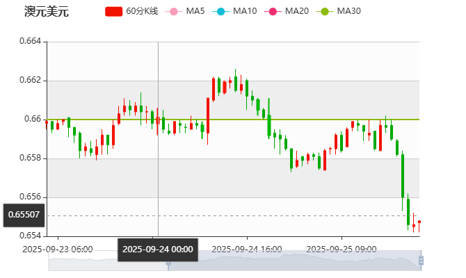 周四(9月25日)亚市早盘,澳元兑美元上涨,目前交投于0.65附近,截止北京时间11:16分,澳元/美元报价0.6598,上涨0.28%,上一交易日澳元/美元收盘报0.6580。澳大利亚8月消费者价格指数(CPI)同比上涨3%,创下一年来最高涨幅,不仅超出市场预期的2.9%,也触及澳洲联储设定的2%-3%目标区间的上限。
