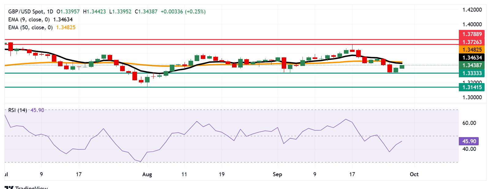 英镑/美元价格预测:升至接近 1.3450,关注九日 EMA 阻力位