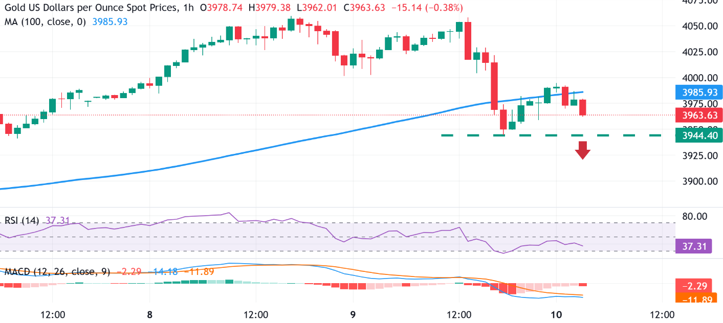 在100小时简单移动平均线(SMA)以下的夜间分解和接受可能被视为看涨疲惫的第一个迹象。也就是说,在任何有意义的修正下跌之前,谨慎的做法是等待在夜间摆动低点附近,约在3944美元区域的进一步卖盘。然后,黄金价格可能会加速下跌,测试3900美元的整数关。