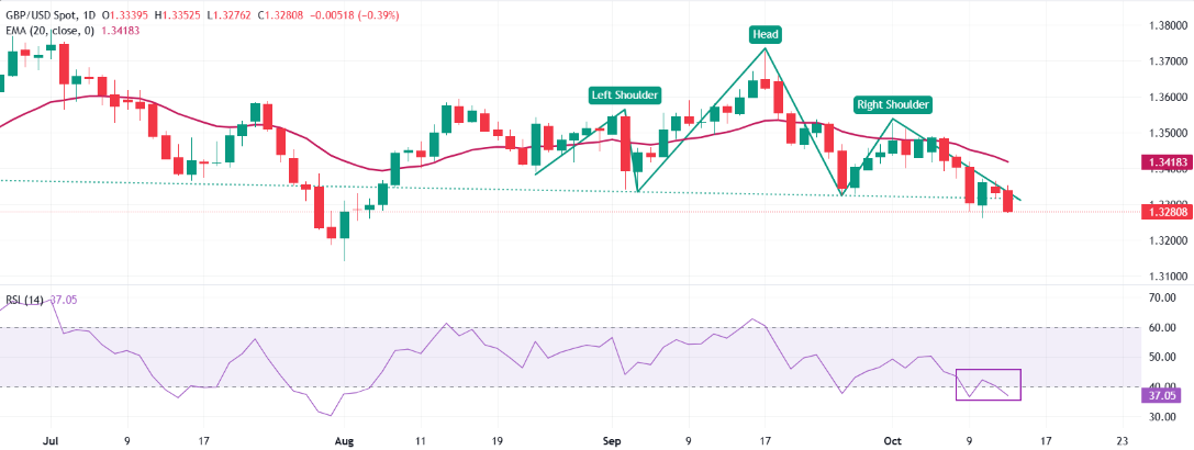技术分析:英镑因H&S的崩溃而下跌