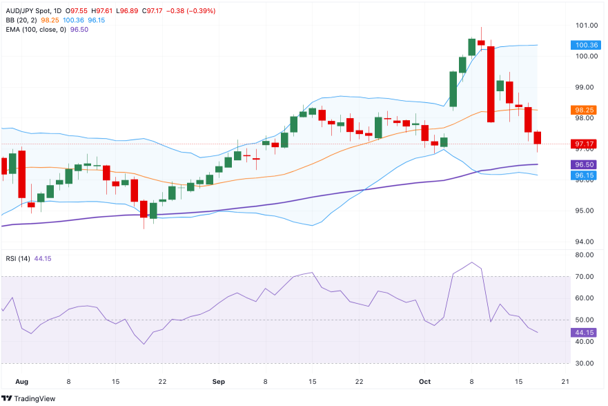 澳元兑日元在周五的亚洲时段吸引了部分卖家至97.10附近。