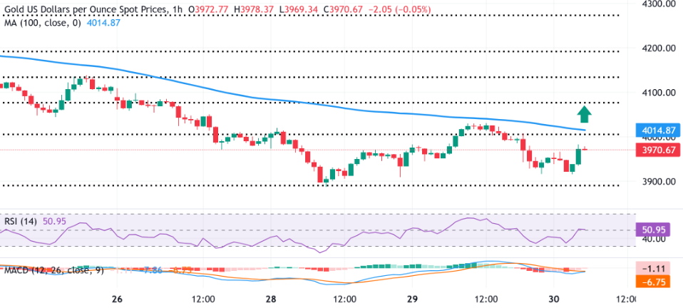 未能在23.6%的斐波那契回撤位上方找到接受度, overnight斐波那契最近从历史新高下跌的调整阶段以及随后的下跌有利于空头交易员。此外,日线图上的指标刚刚开始呈现负面趋势,表明任何进一步的上涨可能仍被视为在$4,000心理价位或23.6%斐波那契水平附近的卖出机会。紧随其后的是100小时简单移动平均线(SMA),在$4,016区域,黄金价格在该区域上方可能会上升到$4058-4,060障碍区域,然后到达$4,075区域(38.2%斐波那契水平)和$4,100标记。