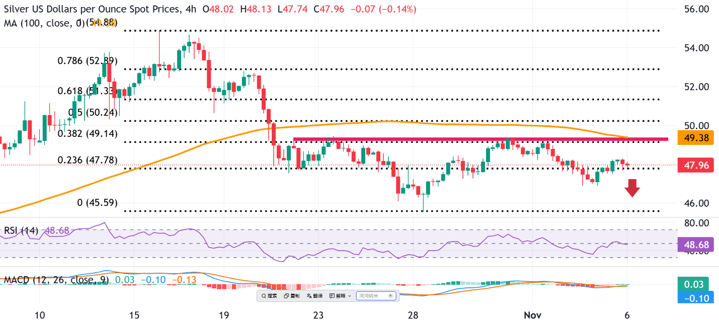 银价预测:白银/美元可能会加速下跌,目标是$46.45的中期支撑位