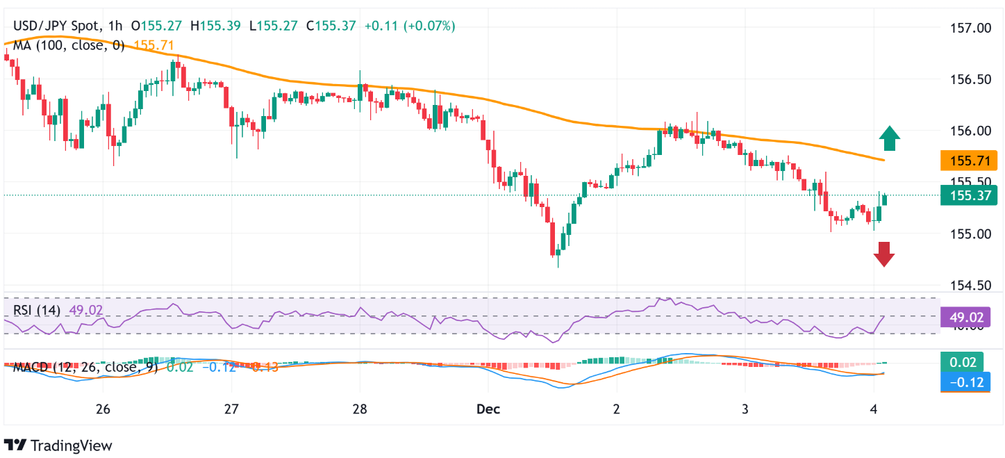 由于周二未能突破100小时简单移动平均线(SMA)和156.00整数关, overnight市场出现了下滑,这有利于美元/日元的空头。然而,日线图上的稍微看涨的振荡器表明,任何进一步的下跌可能会在155.00的心理关卡找到不错的支撑。后者的有效突破将再次确认负面展望并为近期从158.00附近或上个月触及的最高水平进行调整创造条件。