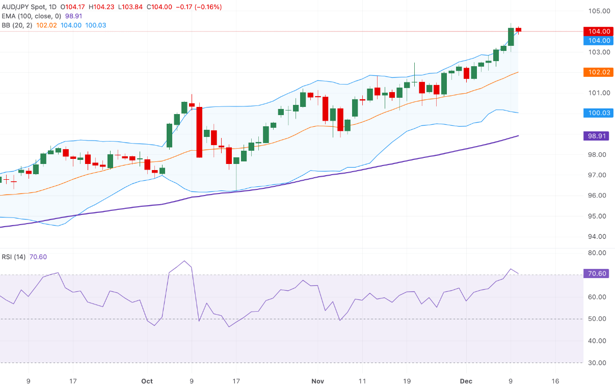 澳元/日元价格预测:因超买RSI限制上行空间,跌至接近104.00