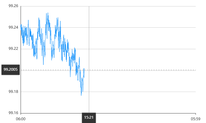 技术指标方面,MACD动能柱维持在零轴下方,显示下行动能尚未完全释放;RSI指标徘徊在40附近,处于弱势整理状态但未触及超卖区域。上方初步阻力位见于99.20附近,突破后或测试99.50阻力区;下方支撑位在98.75区域,跌破后可能进一步下探98.50与98.20区间。