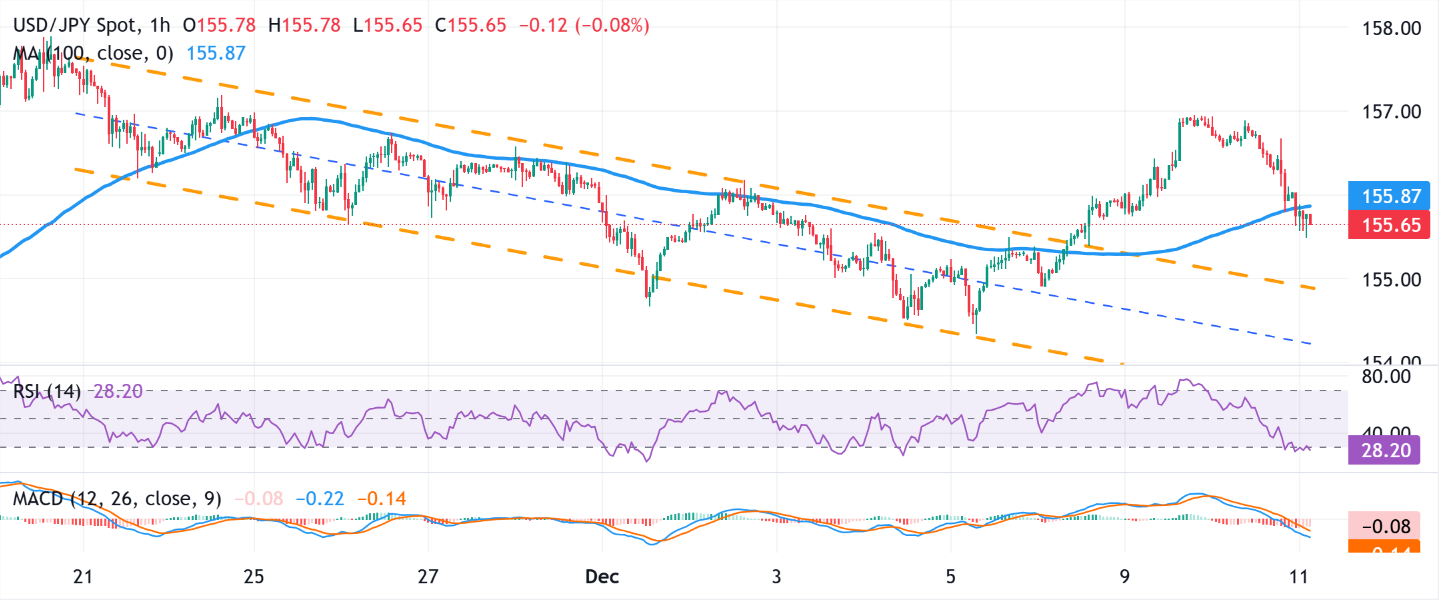 日内低于156.00和支持位100小时简单移动平均线(SMA),以及小时图上负面的技术指标,支持进一步下跌的论点。然而,日线图上的技术指标保持在正值区域,表明任何进一步的下跌更有可能在155.35-155.30的阻力位突破点附近吸引买家。后者代表了短期交易区间的上边界,应该作为一个关键的支撑点。一些后续卖盘,导致随后下跌突破155.00的心理位置,可能会使短期趋势有利于美元/日元的空头。