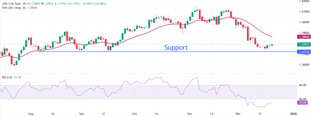 美元/加元价格预测:维持在1.3800下方窄幅整理