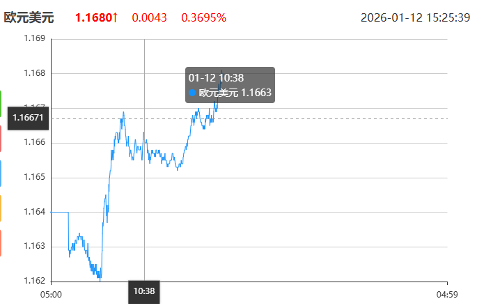 周一(1月12日)亚市盘中,欧元兑美元呈现震荡上行态势,目前交投于1.1656附近。截至北京时间10:00,欧元兑美元报价1.1656,较前一交易日收盘价上涨0.0016,涨幅0.1633%。上一交易日欧元兑美元收盘报1.1640,今日开盘于1.1640,盘中最高触及1.1671,最低下探至1.1620,日内波动幅度0.44%。
