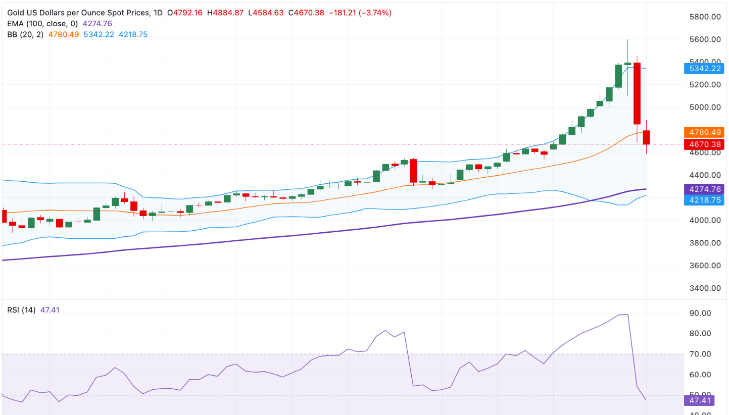 由于一些获利回吐的推动,周一欧洲交易时段初,黄金价格(XAU/USD)下跌至三周低点,低于4550美元。在上周美国(US)政治稳定迹象的推动下, precious metal 在达到历史高点后继续下跌,作为下任联邦储备委员会主席的凯文·沃什被选中,减轻了对美国中央银行独立性的担忧。