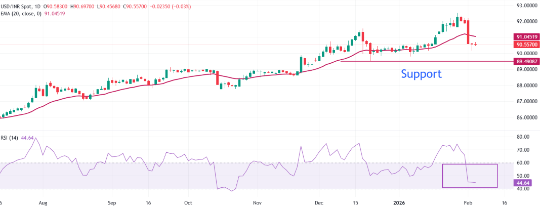 技术分析:美元/印度卢比有望进一步下跌至89.50。