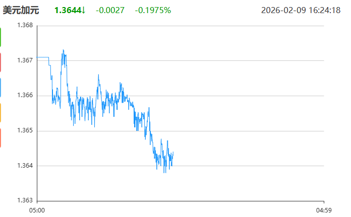 2026年2月6日(周五),美元兑加元延续近期震荡偏强态势,日内依托美元强势支撑小幅攀升,截至今日9时58分,汇价交投于1.3702附近,较前一交易日纽约盘尾市收盘价1.3706小幅波动,日内涨跌幅约-0.0584%,整体呈现“低开后震荡回升”的运行节奏。今日汇价走势主要受美元强弱、美联储政策表态、国际油价波动及加拿大央行相关预期综合主导,多空力量博弈温和,尚未形成明确单边突破。