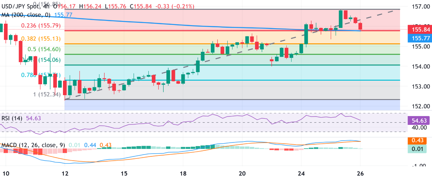 从技术角度而言,日内下跌在155.75的支撑附近停滞——该支撑由4小时图上的200期简单移动平均线(SMA)和152.34-156.85升势的23.6%斐波那契回撤位组成。该区域应作为日内交易者的关键点,如果 decisively 突破该点,可能会引发围绕美元/日元对的技术性抛售,并为更大的损失铺平道路。