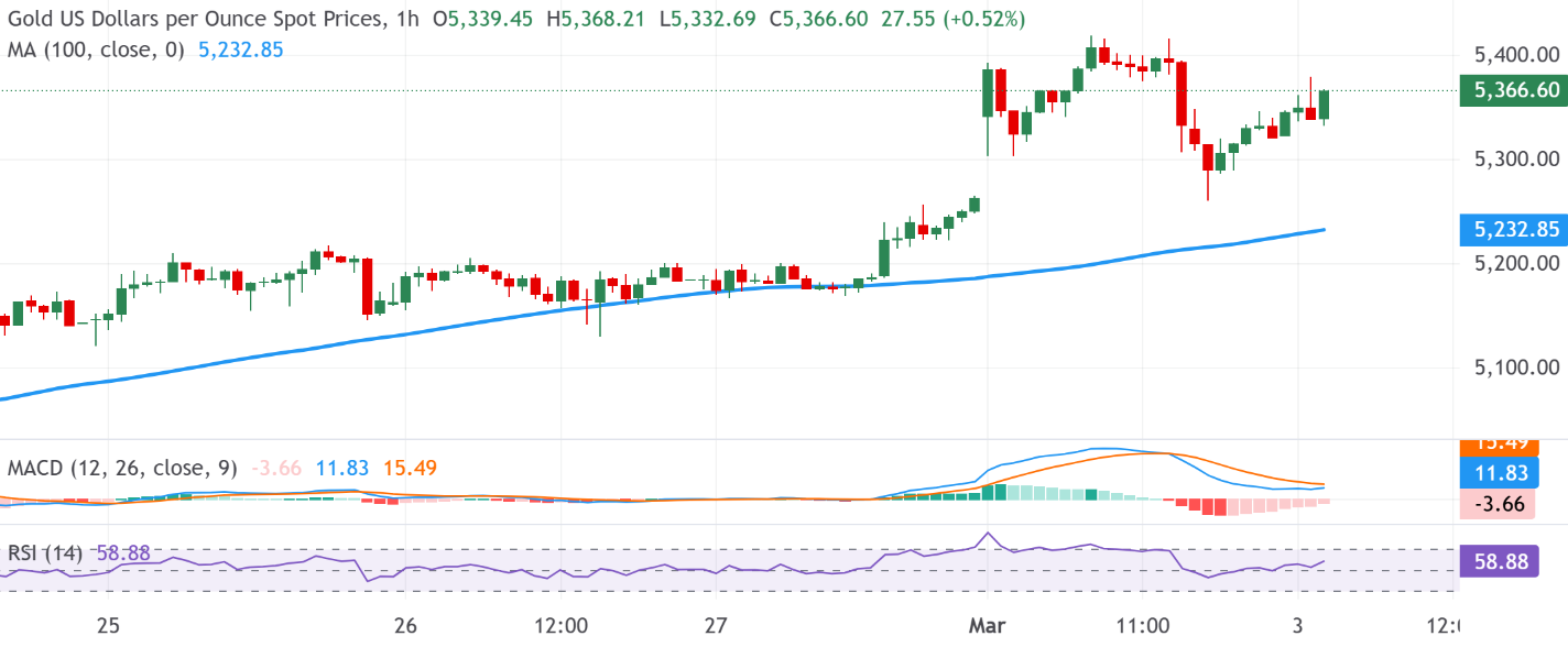 黄金(XAU/USD)连续第三天保持看涨情绪,在周二进入欧洲交易时段时交易价格高于5350美元。对中东地区更广泛冲突的担忧继续影响投资者情绪,支撑了对传统避险资产的需求。