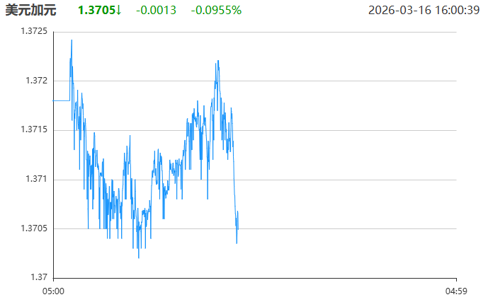 截至2026年3月16日,美元兑加元实时汇率报1.3710,较前一交易日微跌0.0007,跌幅0.0583%,当日最高1.3730、最低1.3704,呈窄幅震荡回调态势。近期该货币对自年初高位逐步回落,受美国关税政策扰动、加拿大经济数据疲软及油价波动影响,短期维持震荡格局,机构对后续走势分歧明显。
