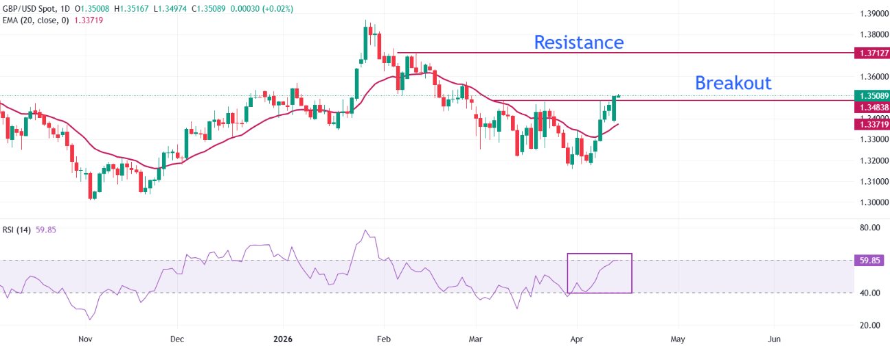 英镑(GBP)在周二亚洲交易时段延续涨势,兑美元(USD)接近1.3515。英镑/美元货币对走强,因市场情绪在特朗普总统和副总统JD万斯就伊朗永久停火谈判发表积极评论后,仍对风险资产有利。