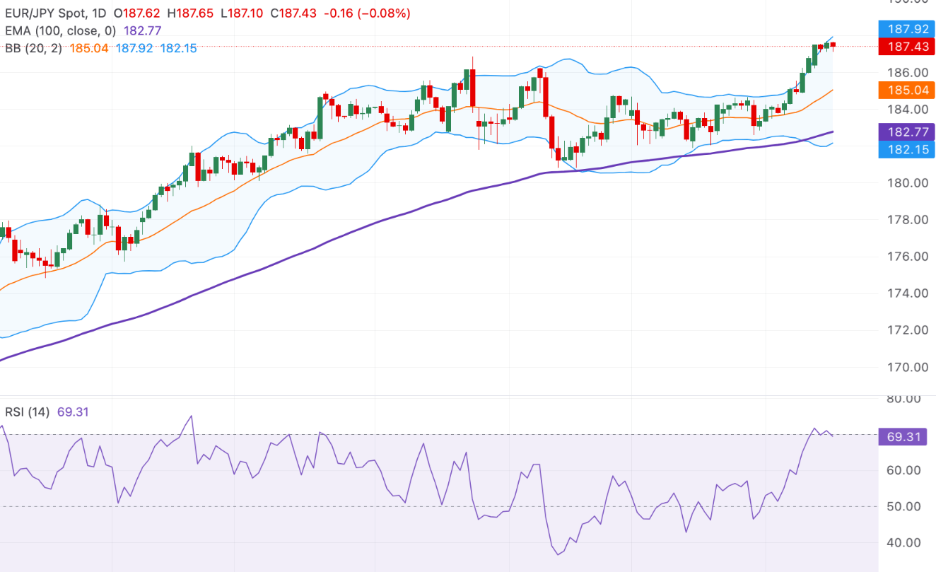 欧元/日元价格预测:跌至接近187.50,但保持在100日均线上方看涨