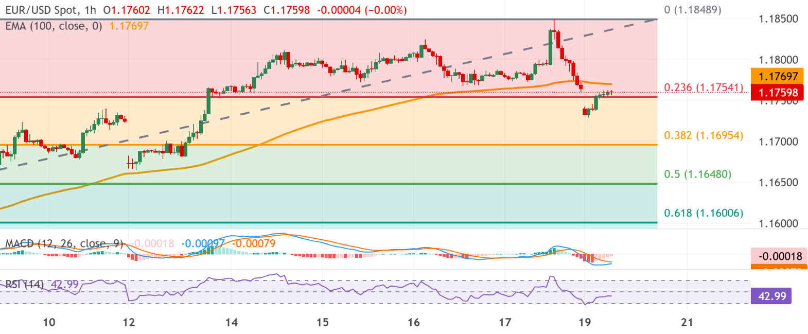 欧元/美元价格预测:交易价位于1.1700中段上方;若低于100小时移动平均线,看跌倾向持续