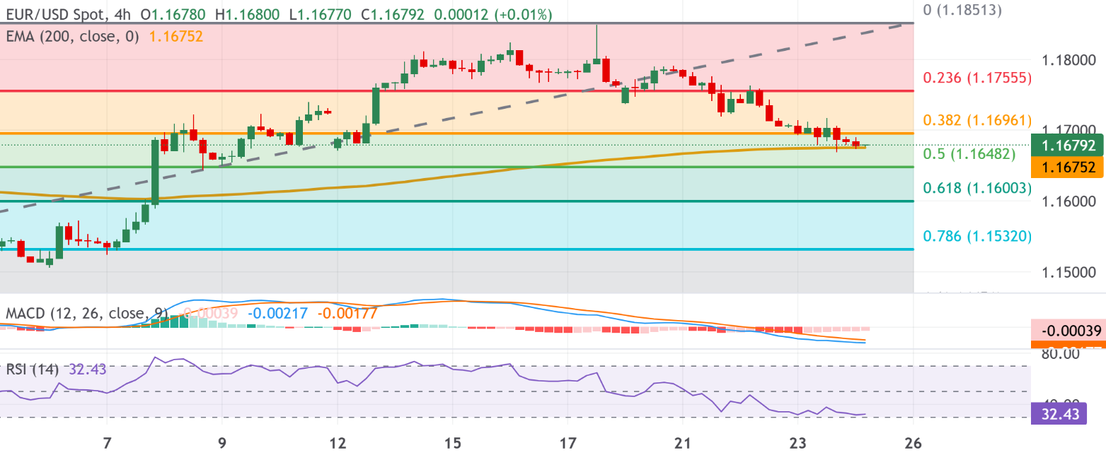 欧元/美元价格预测:因空头等待H4图200-EMA跌破,汇价在1.1700下方挣扎