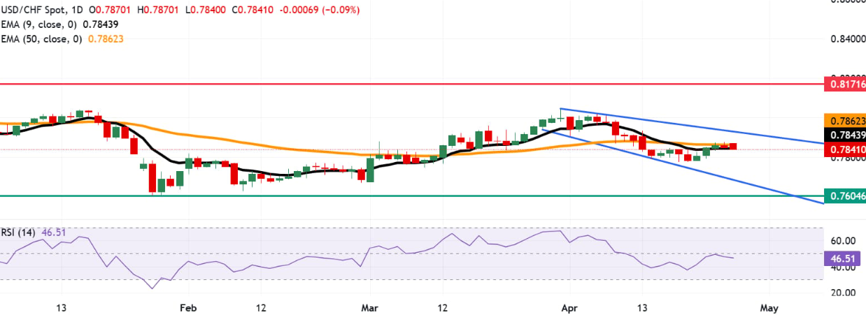 USD/CHF 可能测试位于 0.7690 附近的下降通道下轨。