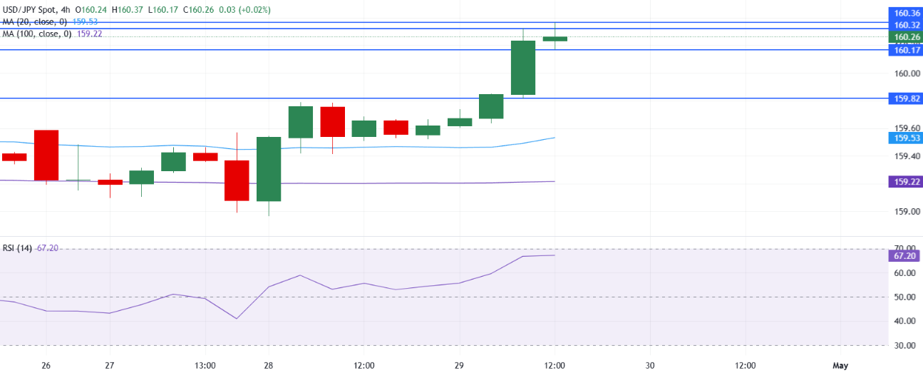 在顶部,160.32处出现即时阻力,随后在160.36处有后续阻力,如果突破这两个位置,将打开进一步上涨的空间。在下方,初步支撑位在160.17,随后是159.82,20日简单移动平均线(SMA)在159.53,100日SMA在159.22,这些支撑位在回撤时加强了更广泛的支撑带。