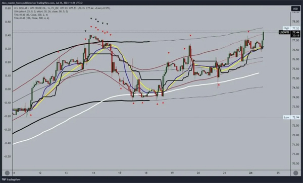 亚洲交易时段,油价维持在76.50美元上方的高位。此后,我们看到新的推动力并跃升至 77.00 美元的水平。我们预计会看到突破并继续看涨 。下一个目标是之前的高点 77.50 美元,如果达到该水平,油价将很快继续走高。潜在的更高目标是 78.00 美元和 78.50 美元。