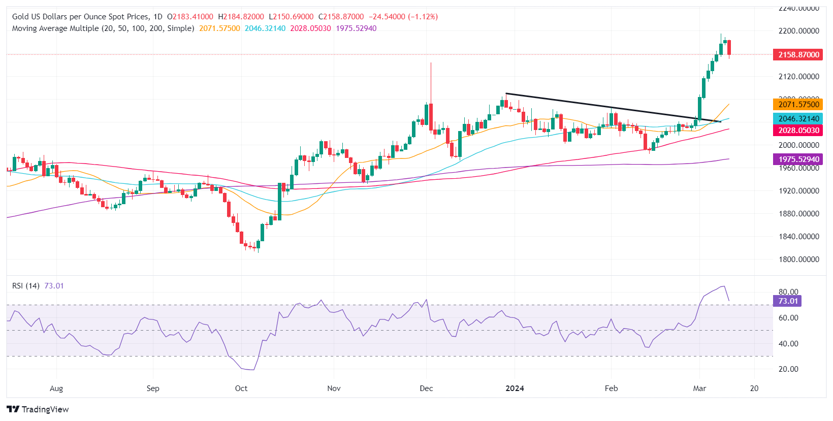 技术分析:金价下跌,逼近 2,150 美元