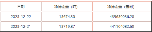 美国商品期货交易委员会(CFTC)数据显示,截至12月22日,白银ETF持有量为13674.30吨,较上一交易日减持45.57吨。