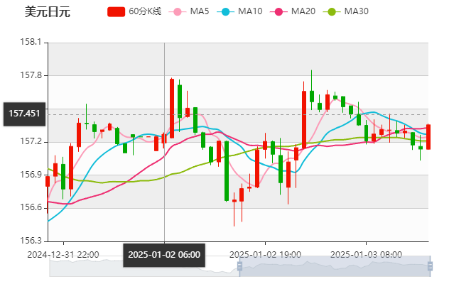 周五(1月3日)亚盘早盘,美元兑日元下跌,目前交投于157附近,截止北京时间10:27分,美元兑日元报价157.32,下跌0.08%,上一交易日美元兑日元收盘为157.45。日本央行通常不会向市场透露其意图。原因之一是央行不想让投机者有机可乘,这些投机者企图利用日元的大幅波动获利。