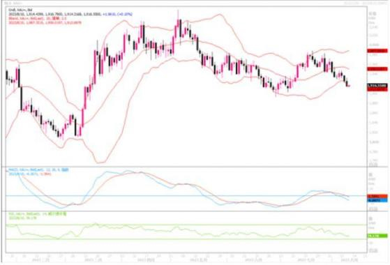 从日线图上看,金价也渐渐远离20日均线朝向下行,显现黄金空头力量在增强。如果周四当晚美国7月CPI通胀数据强于预期,黄金将会继续下滑,首先考验1900整数大关,随之则是6月低到过的低位1892。相反若数据显示继续下降,则黄金会有一定幅度的反弹回升。