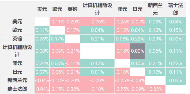 热图显示了主要货币之间的百分比变化。基础货币从左列中选取,而报价货币从顶行中选取。例如,如果您从左栏中选择欧元并沿水平线移动到日元,则框中显示的百分比变化将代表欧元(基础)/日元(报价)。