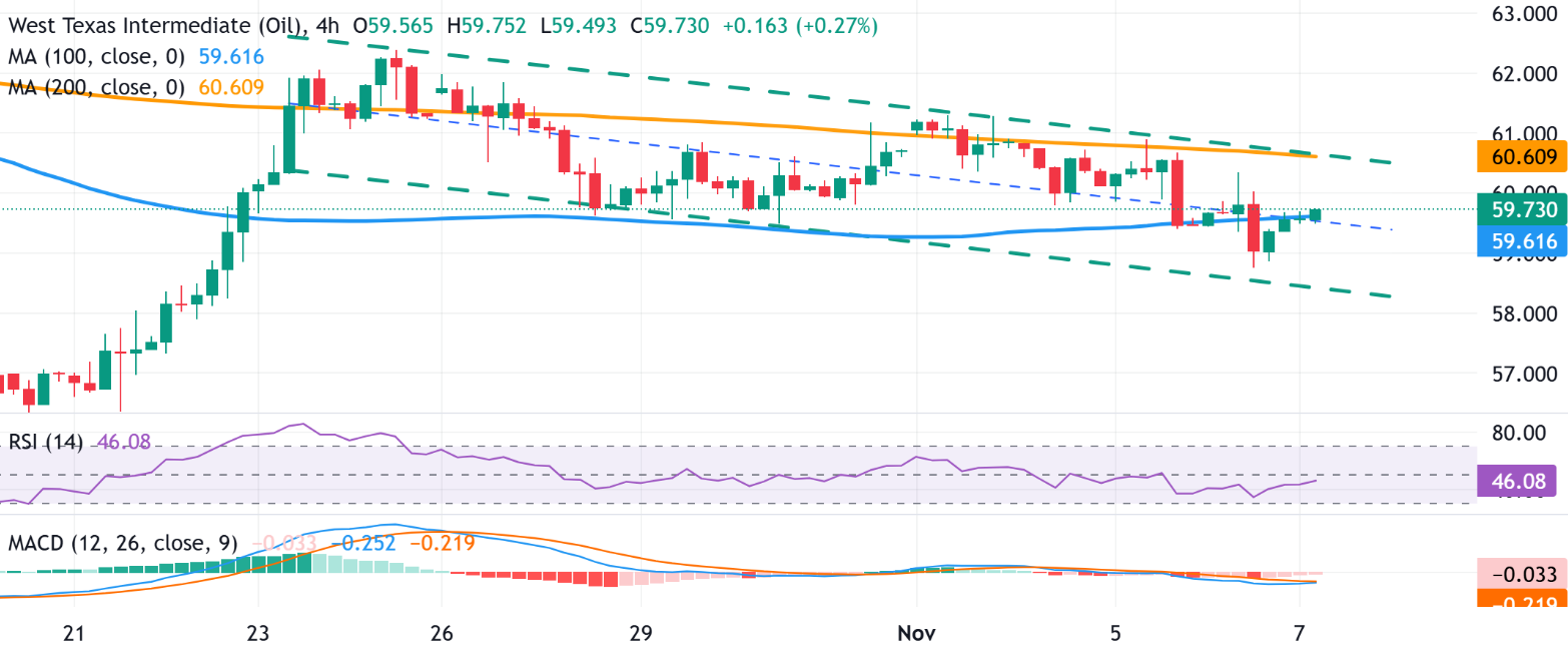 WTI价格预测:在60.00美元以下进行温和交易;尚未脱离险境