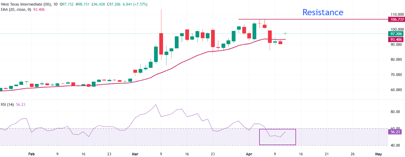 在日线图上,WTI美国原油交易于98美元附近,由于价格远高于20日指数移动均线(EMA)93.41美元,短期仍维持看涨倾向。当前价位与这条上升均线的距离表明潜在趋势支撑依然稳固,而相对强弱指数(14)在56.23水平已脱离超买区域,暗示上行动能正在趋缓而非逆转。