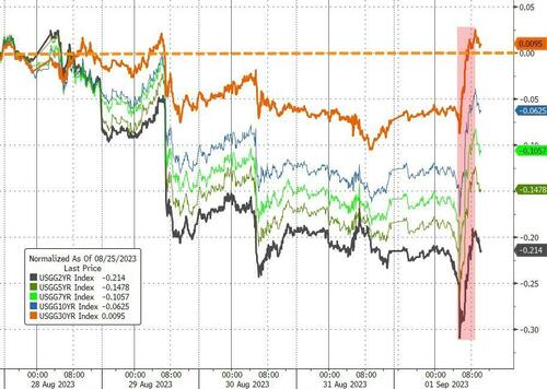 这一系列就业指标放缓的最新力证,使得市场情绪转向买入并持有对政策敏感的两年期国债,贝莱德高级投资组合经理Jeffrey Rosenberg形象地称之为“尖声买进”(screaming buy)。