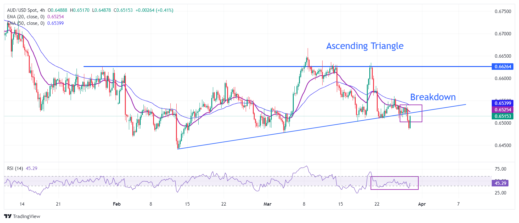 摘要:澳元/美元在 0.6500 附近找到暂时支撑,但仍倾向于下行。