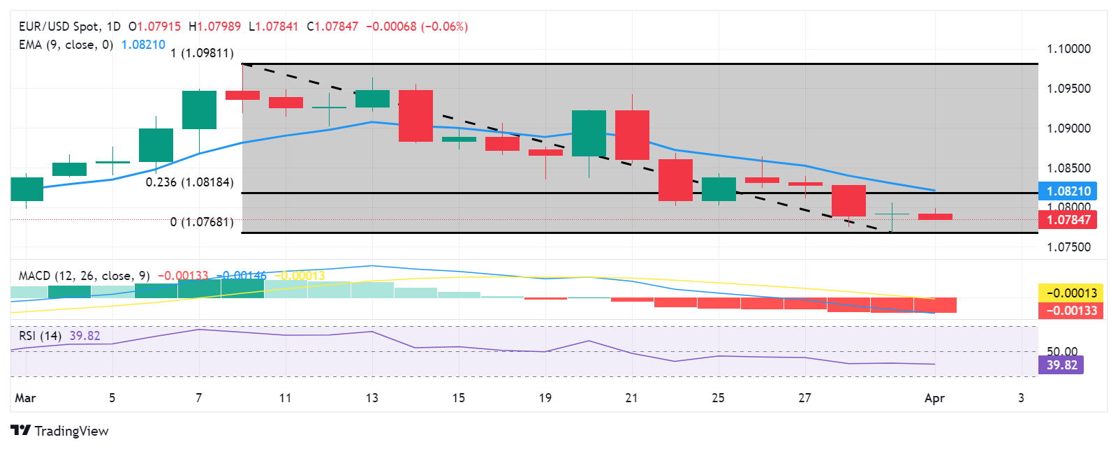 欧元/美元价格分析:维持在1.0800心理水平下方