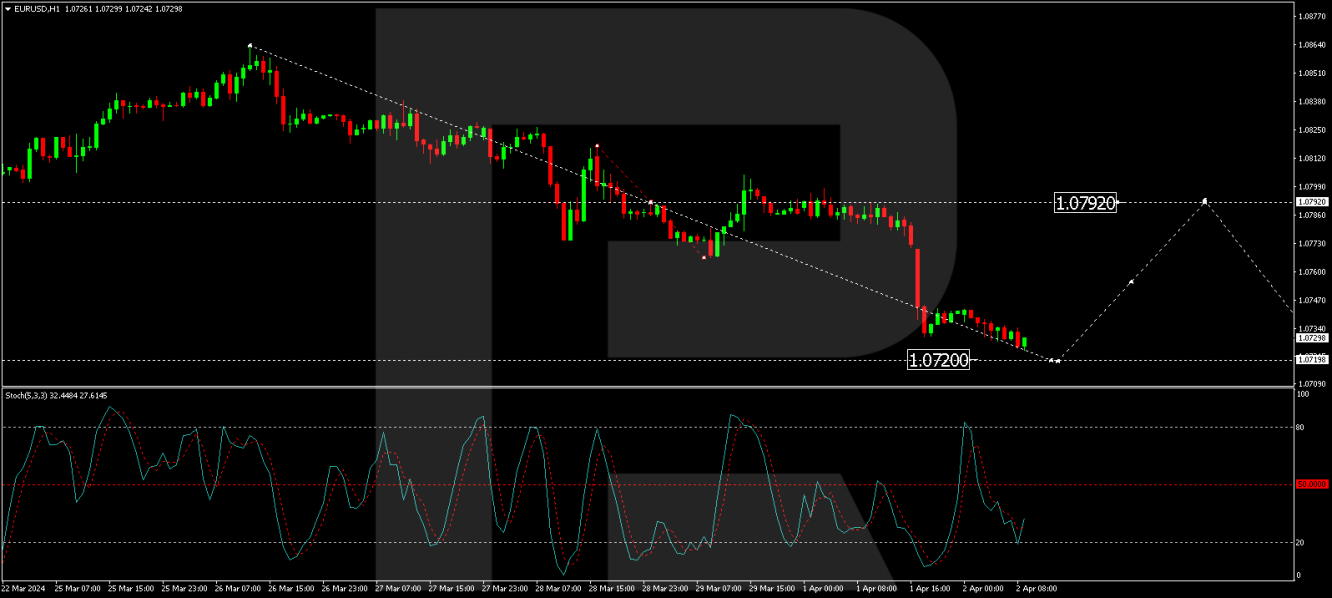H1图表分析:H1图表上的修正结构已在1.0804水平完成。消息发布后,市场向下突破1.0777水平,继续下行至1.0720。完成后,可能会上涨至 1.0790(从下方测试),然后再跌至 1.0650 关口。随机指标目前低于 50,预计将进一步跌至 20 关口,支撑看跌前景。