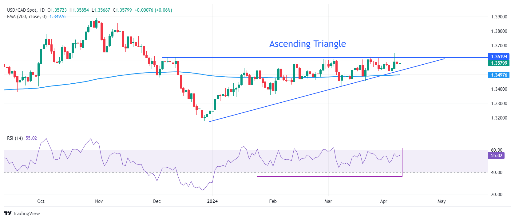 随着投资者等待美国消费者的到来,美元/加元的组合也在努力寻找方向。 价格指数 3月份的数据将于周三公布。在周二的欧洲交易会上,这一愚蠢的资产的交易价低于1.3600的整体阻力。美国3月份的通胀数据预计将为美联储何时开始降息提供一些线索。