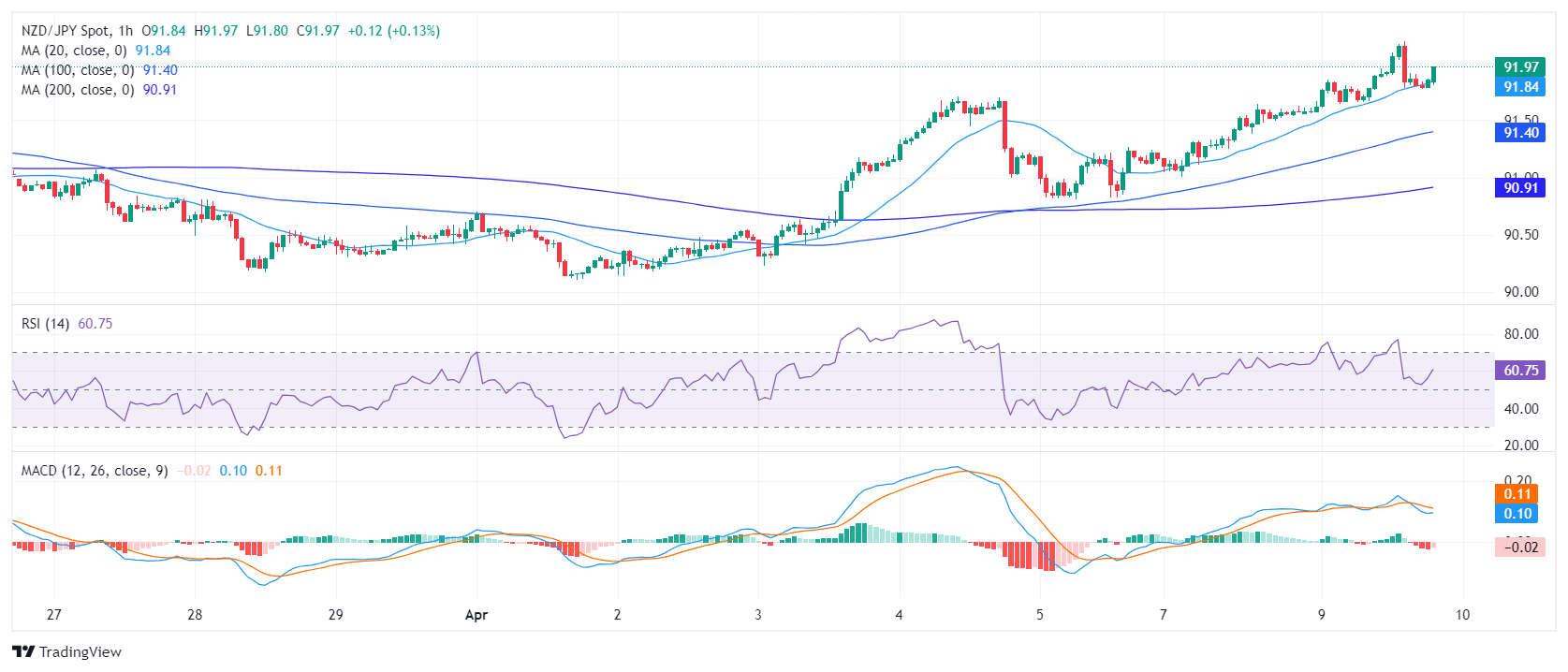 新元/日元的交易价为91.79,上涨0.25%。目前,该公司正在展示强劲的看涨趋势,其购买势头得到加强,因为该公司的仓位比其主要的简单移动平均线(SMA)要舒服。每日图表上的指标仍然强劲,而每小时的指标可能预示着即将到来的合并。
