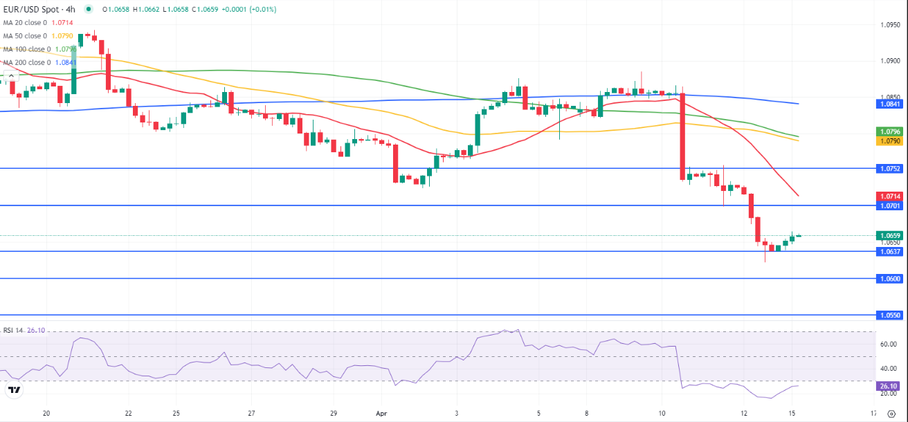 欧元兑美元上周下跌 1.8%,创 2022 年 9 月以来最大单周跌幅。周一欧洲时段,该货币对持稳于 1.0650 附近,市场参与者等待美国宏观经济数据发布,同时维持收盘价关注地缘政治动态。