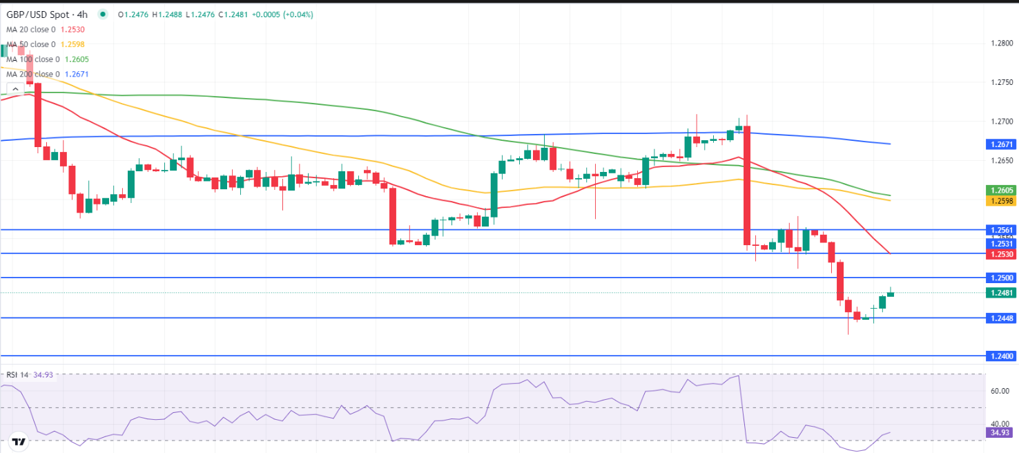 4小时图上的相对强弱指数(RSI)指标升至30上方,表明英镑/美元正在进行技术调整,但近期仍保持看跌。