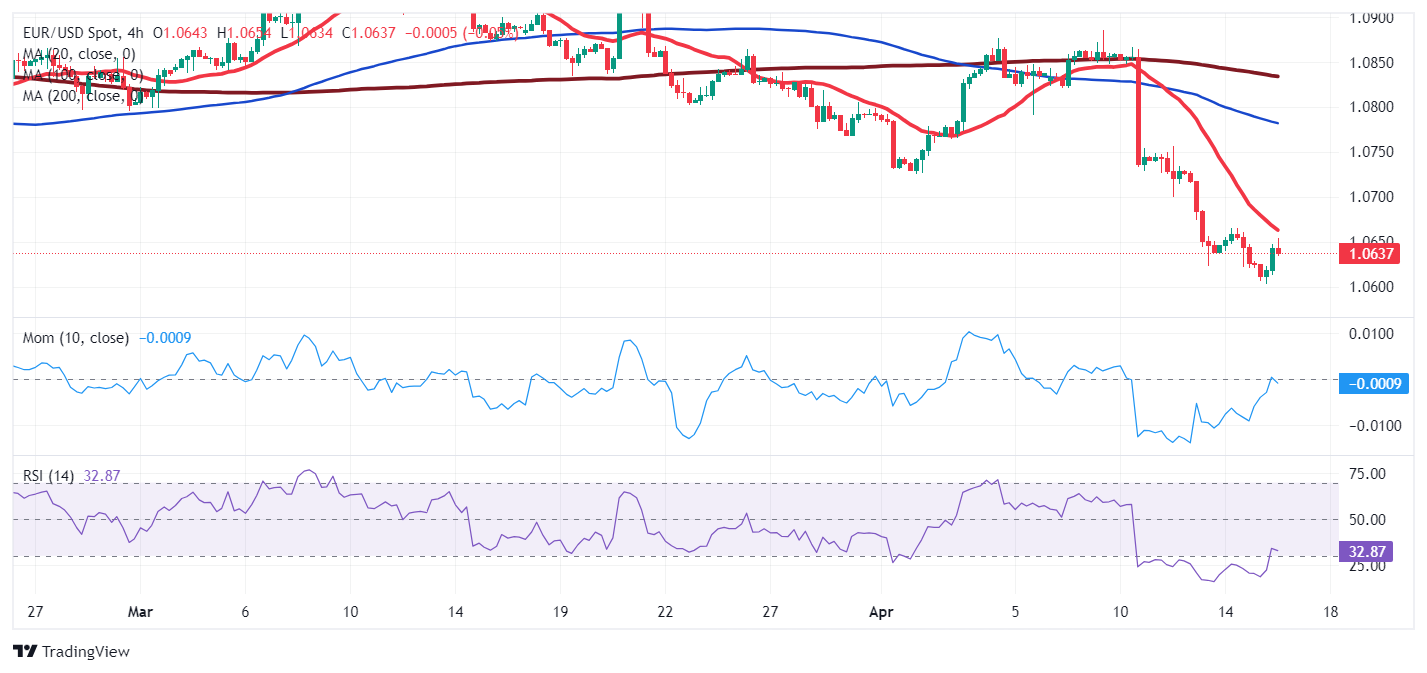 美国数据公布后,欧元/美元汇率扩大涨幅至1.0651,但随后回落。日线图看涨潜力有限。最新的上涨似乎是修正性的,因为技术指标几乎没有从超卖读数中反弹,缺乏足够的动力来确认临时底部。与此同时,欧元/美元走势低于其所有移动平均线,其中 20 日简单移动平均线 (SMA) 将其下行斜率延伸至较长移动平均线下方。