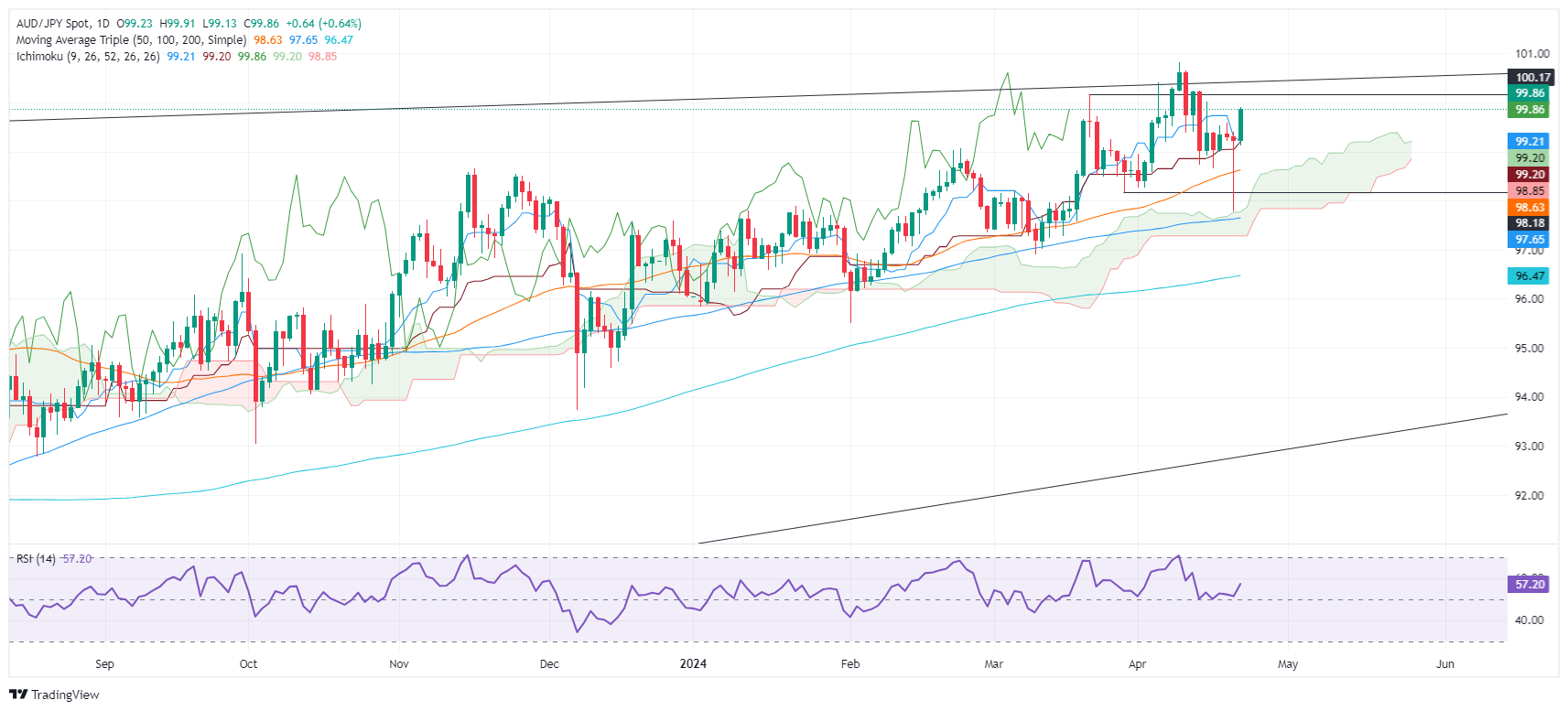 受全球市场重燃乐观情绪的提振,澳元/日元大幅攀升,接近 100.00 的关键心理水平。