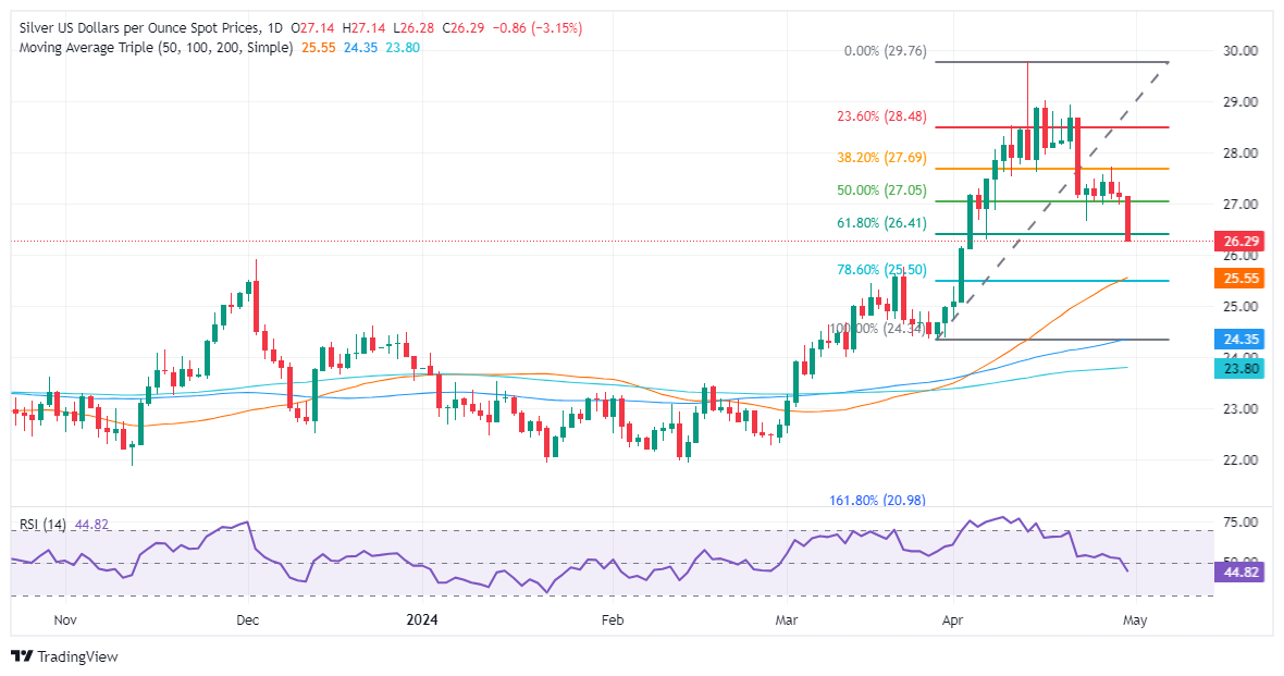 北美时段尾盘,由于美元在美国国债收益率上升的推动下卷土重来,白银价格大幅下跌。美国就业成本指数(ECI)的上升重新引发了有关美联储可能因通胀压力而推迟降息的讨论。XAG/美元交易价格为 26.29 美元,下跌超过 3%。