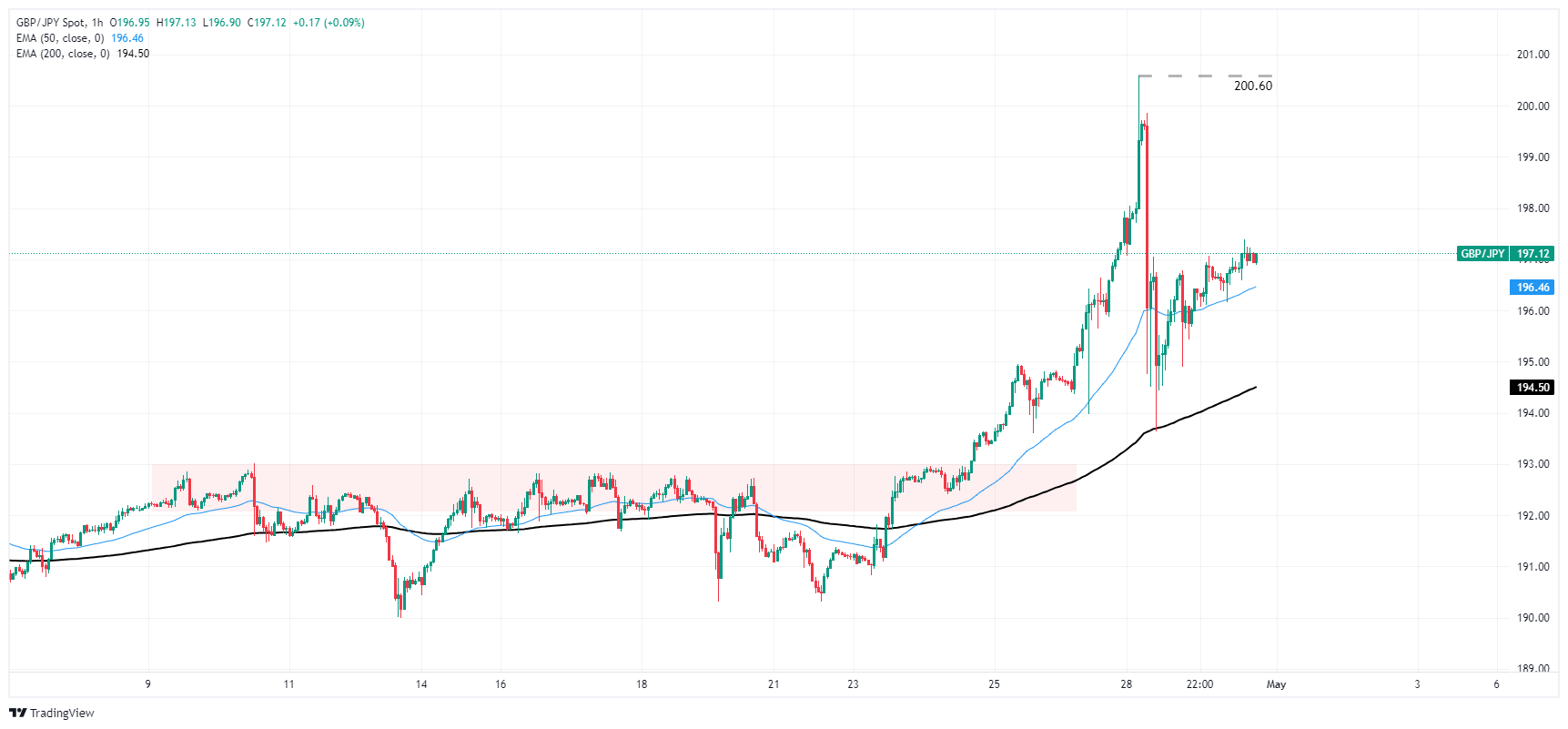 疑似日本央行干预日元后,英镑/日元重回197.00上方