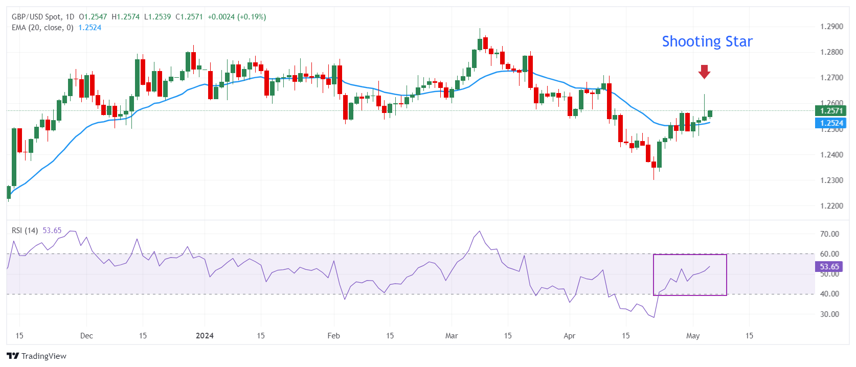 如果空气跌破周五低点 1.2522,就会触发流星形态的崩溃。英镑近期前景仍然乐观,因为它交投于 20 日指数移动平均线 (EMA) 上方,该均线交投于 1.2520 附近。