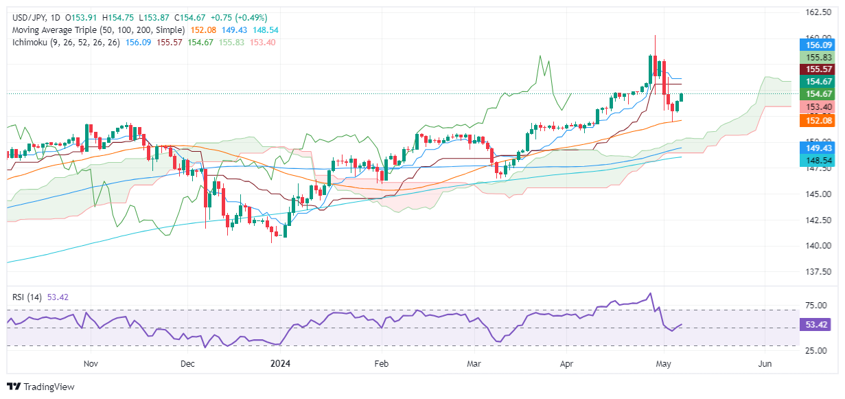 另一方面,如果美元/日元跌破 154.00,可能会引发逆转,并将货币对推向 Senkou Span B 的 153.35,随后是 50 日均线 152.07。